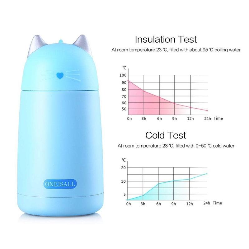 This cat thermos is also great for keeping cold drinks properly cold in summer, with or without ice, which is more affordable and more environmentally friendly than buying plastic bottles of water.