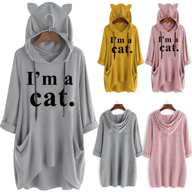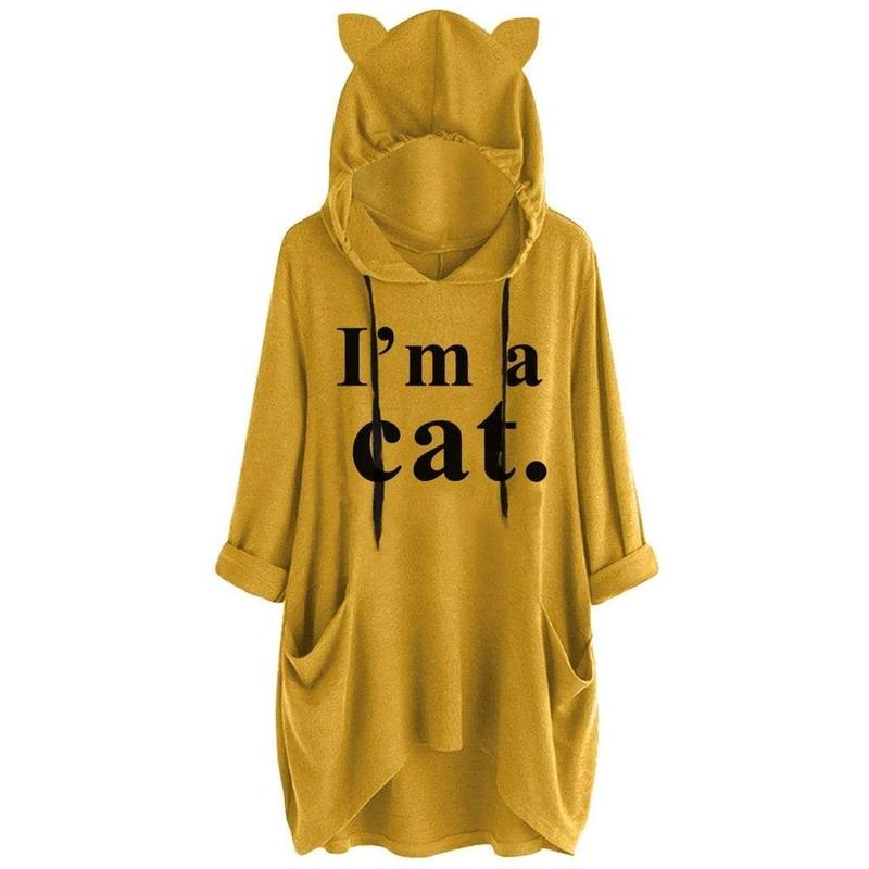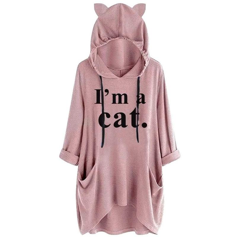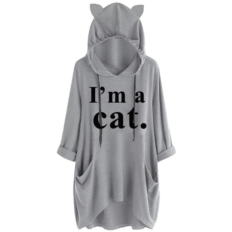 I'm A Cat Print Oversize Hoodie With Cat Ears