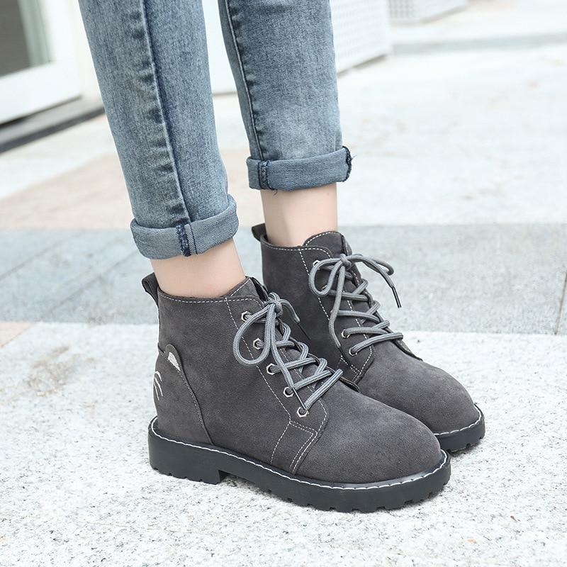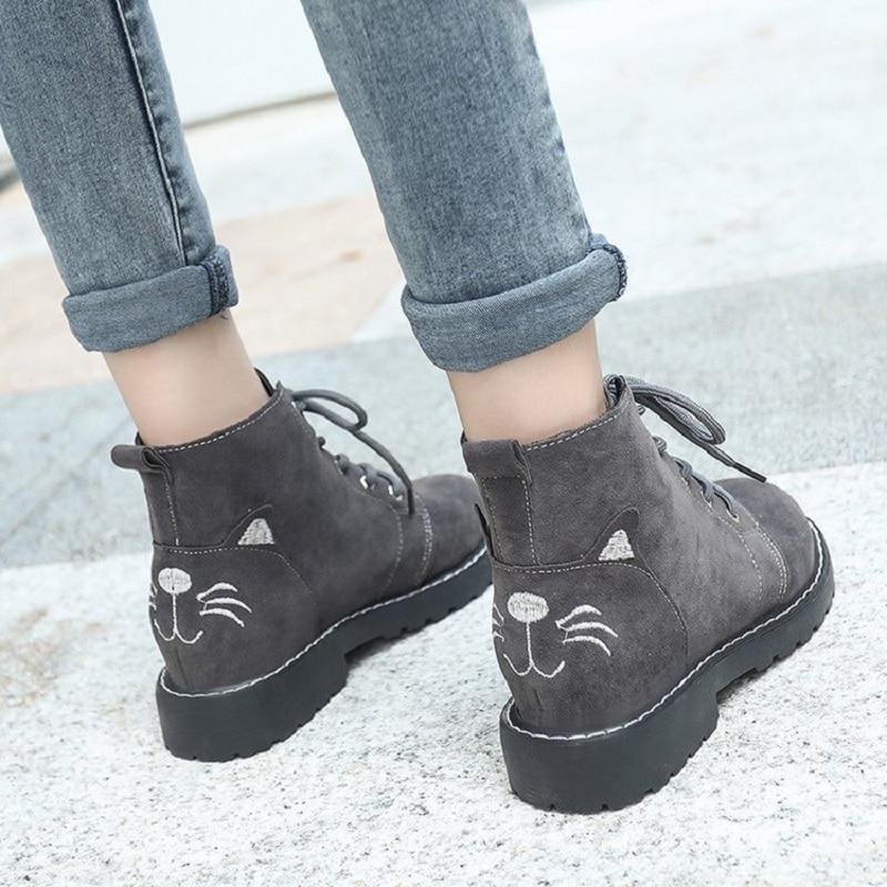 These ultimately feline accentuated Sweet Cat Ankle Martin Boots - made of Suede Leather - are your saviour to carry you through the cold winter while maintaining warm and cozy toes. They are equipped with a solid sole and you can comfortably slip in and out and they will firmly embrace your feet and ensure a comfy walking experience.