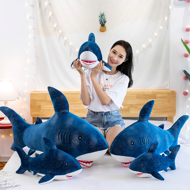 Decorate any space in your home with these blue shark plush toys. Measuring 4 different sizes.