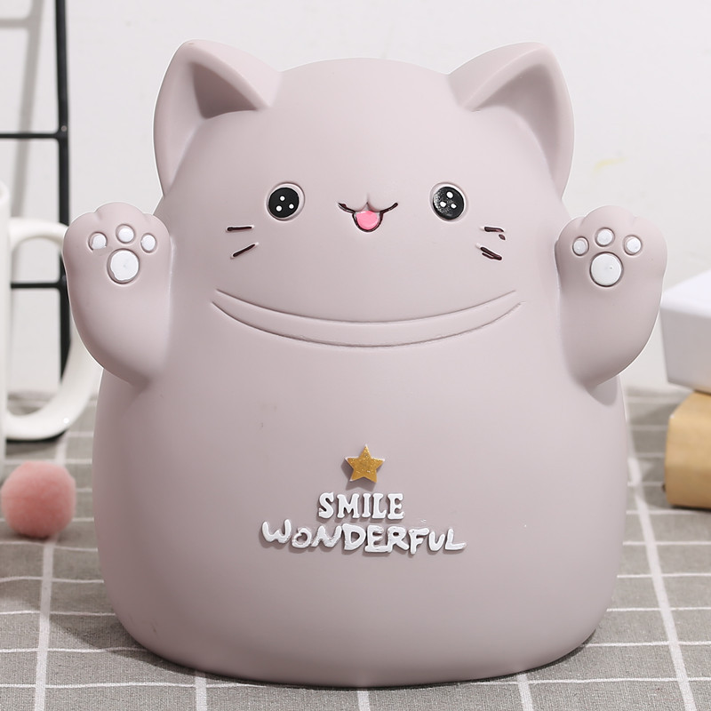 Usually... we and you love to spent money for our cats but in this case, this particular cat helps you to save money and holds on firmly onto the money that you threw into. The densely made synthetic resin that is shaped as the cats body will not allow humans cats to get grip on coins that have been put in.