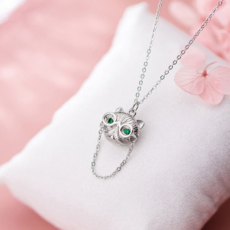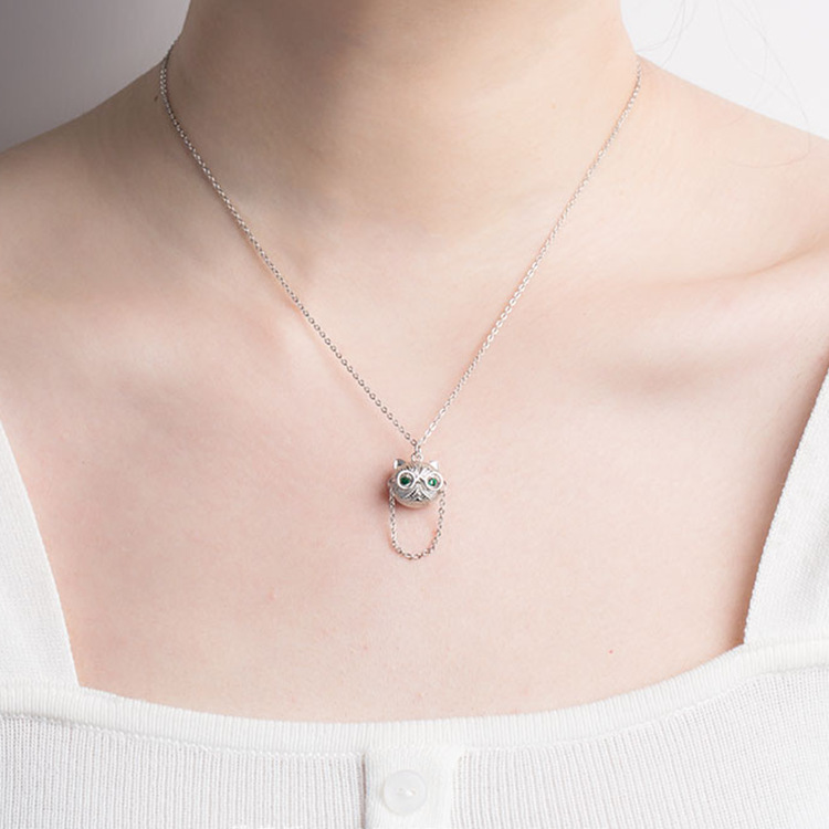 925 Silver Glasses Cat Necklace