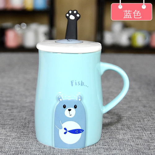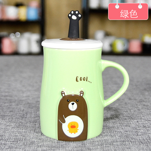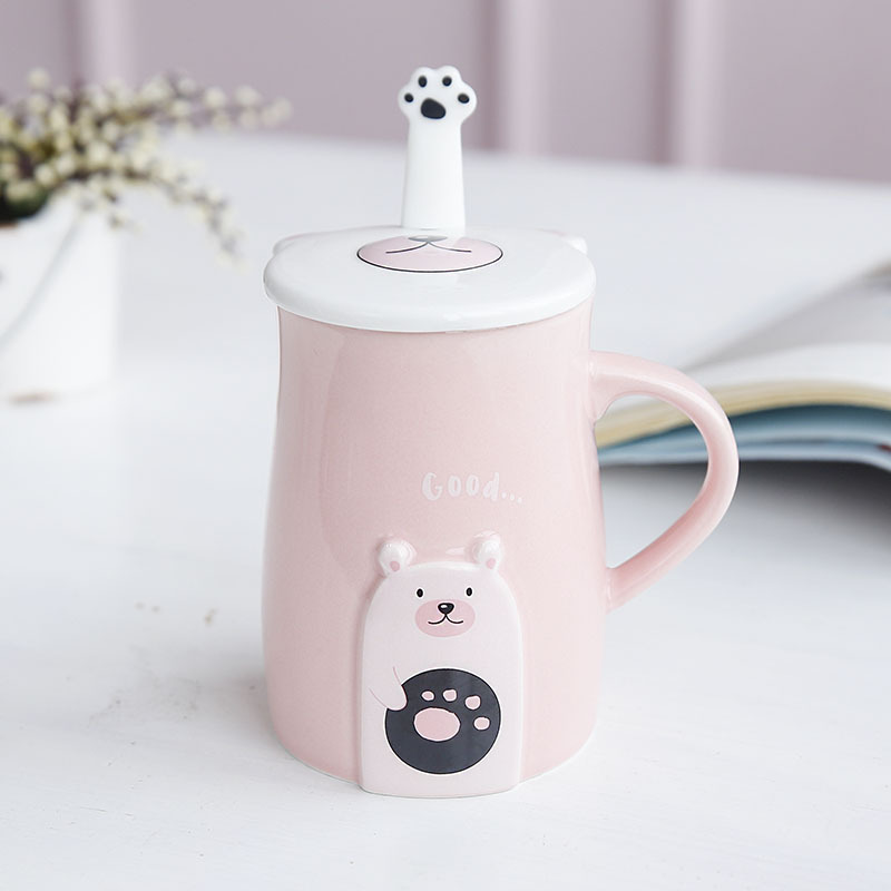 Cute Bear Ceramic Mug With Spoon And Lid
