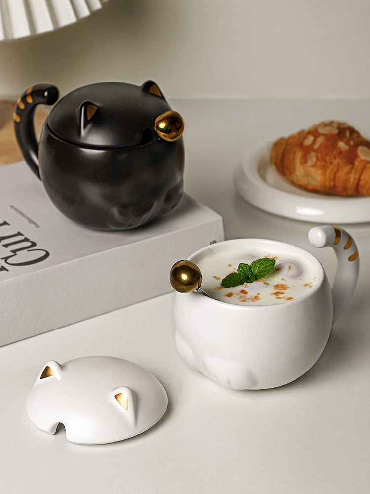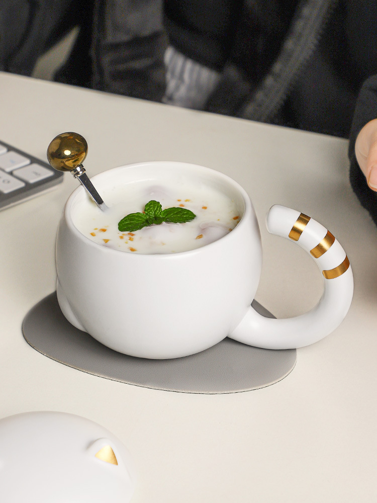 Cartoon Ears Long Tail Mug With Lid And Spoon