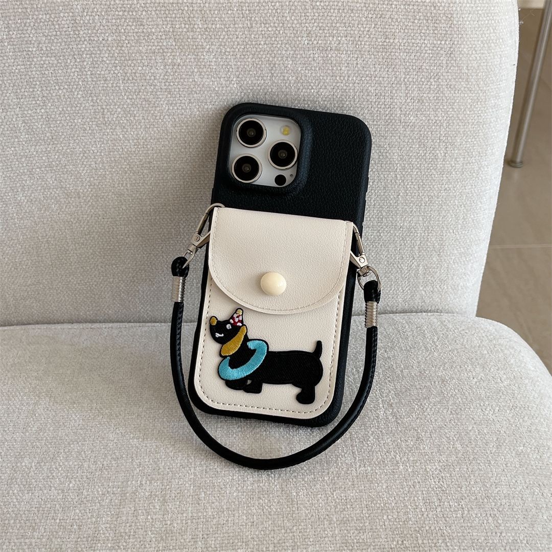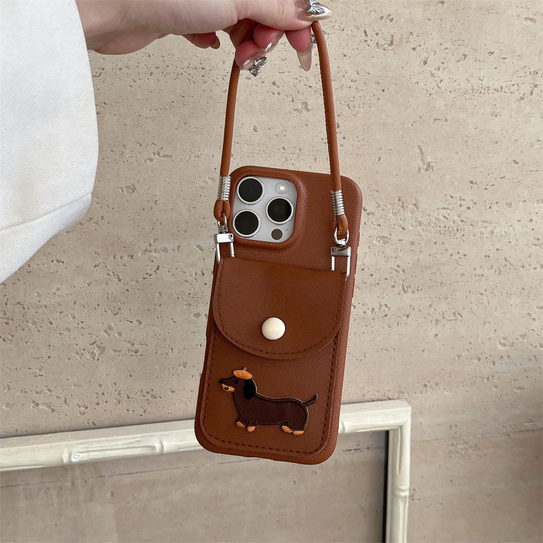 Cute Dachshund Card Holder iPhone Case With Rope *(iPhone 12 - iPhone 16 )